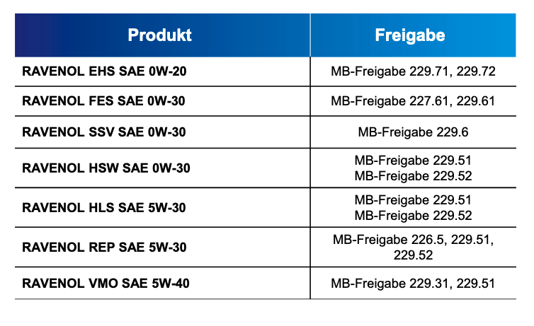 Die Produkte, die entwickelt wurden, um die negativen Auswirkungen des Biodiesels zu bekämpfen, sind auf der nächsten Folie mit den entsprechenden Freigaben von Mercedes aufgeführt.