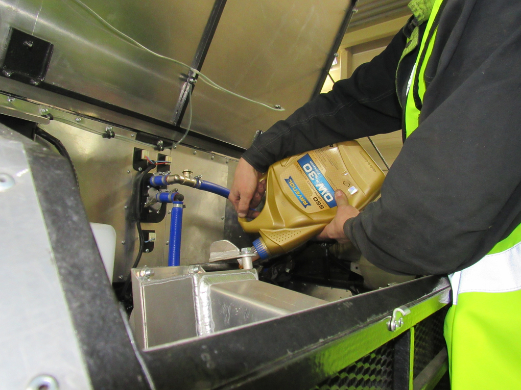 Voll beladen wiegt der Offroad-Koloss ca. sieben Tonnen. Starke 150 PS bei einem Drehmoment von 360Nm liefert der Turbodiesel-Motor Cummins 2,8 ISF. Für die geeignete Schmierung in eisigen Polarregionen sorgt das RAVENOL SSO SAE 0W-30. Dies ist ein vollsynthetisches Leichtlauf-Motorenöl mit der CleanSynto® Technologie. Insbesondere die exzellenten Kaltstarteigenschaften gewährleisten optimale Schmiersicherheit in der Kaltlaufphase, die bei Temperaturen um die 30 Grad unterhalb des Gefrierpunkts besonders zum Tragen kommen. Des Weiteren kommt zur Schmierung von Hypoidachsen RAVENOL EPX Getriebe-Oel SAE 85W-140 GL-5 und im Schaltgetriebe RAVENOL VSG SAE 75W-90 zum Einsatz. Weitere Schmier – und Betriebsmittel sind: