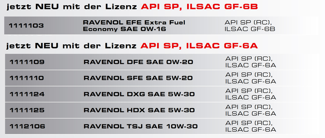 Welche RAVENOL Produkte erfüllen die neue Spezifikation API SP?