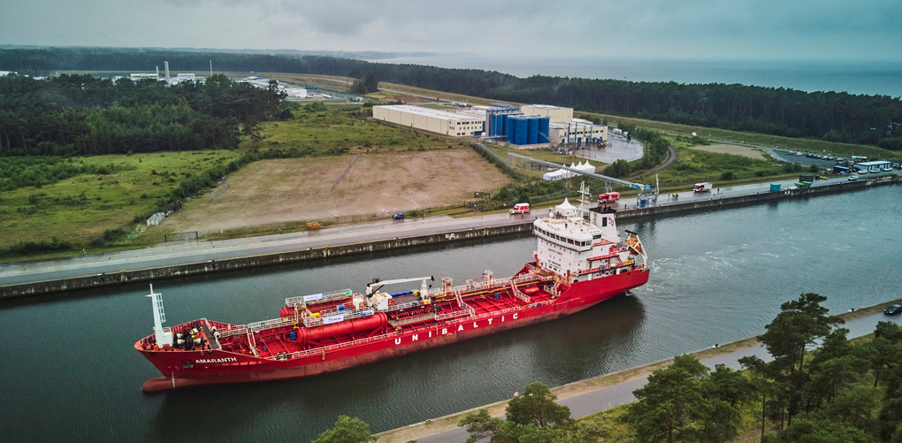Für den Transport der ersten Lieferung Grundöle wurde die Reederei Unibaltic beauftragt. Deren Tanker „Amaranth“ des IMO Typs II und III ist bei einer Länge von 109 Metern sowie einer Breite von 17 Metern speziell für den Transport von petrochemischen Produkten ausgelegt. Die Gesamt-Tragfähigkeit dieses Schiffes liegt bei mehr als 6.400 Tonnen und entspricht damit der Lieferung durch etwa 300 Tankkraftwagen. Mit dem neuen Schiffsentlader werden die über den Seeweg ankommenden Rohstoffe über eine intelligent integrierte Rohrbrücke direkt in das aus mehreren Tanks bestehende Grundöllager gepumpt.
