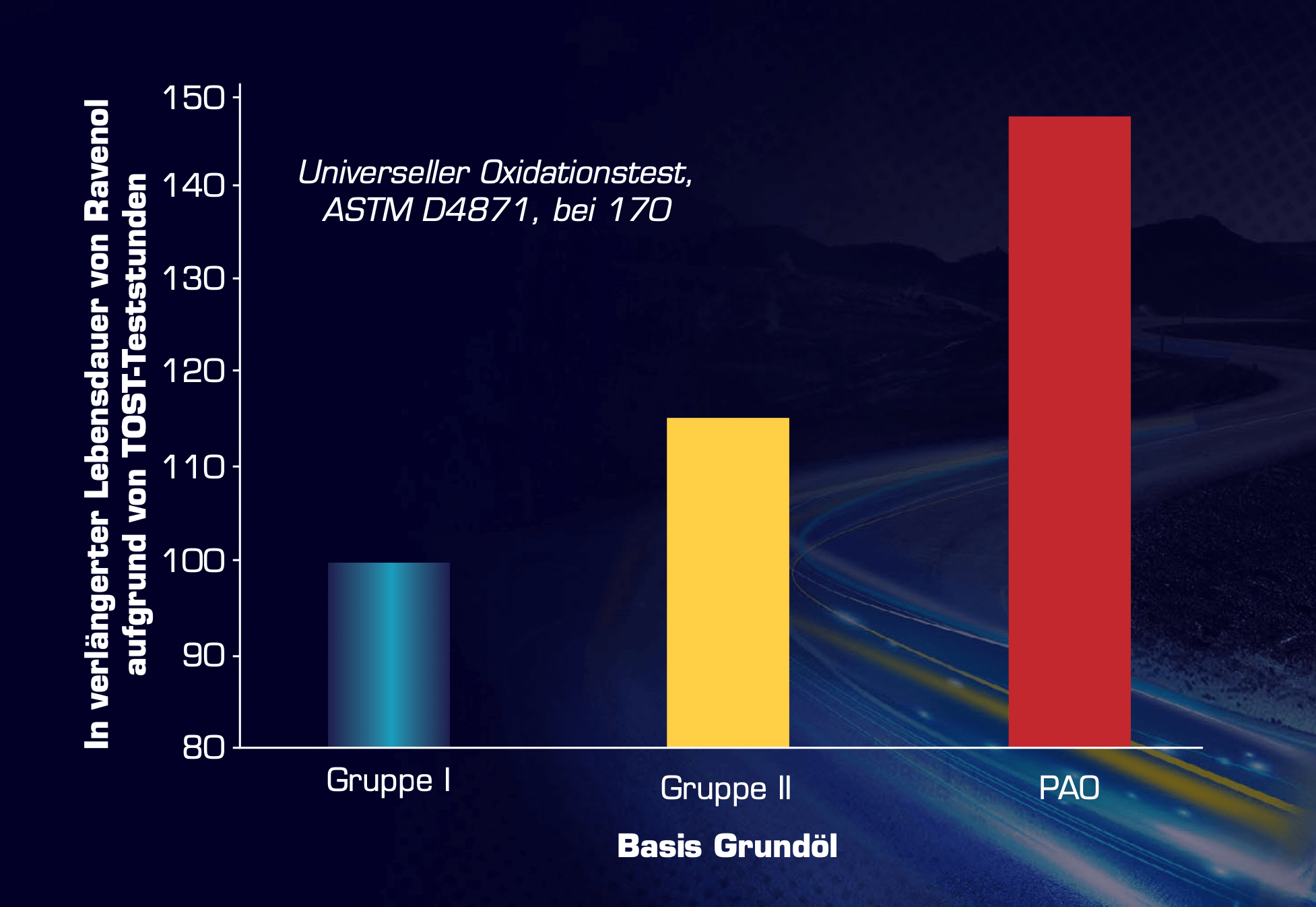 - Oxidations- und thermische Stabilität gehören zu den wichtigsten Vorteilen von Synthetikölen. Eine höhere Stabilität des Basisöls führt zu einer höheren Stabilität der Additive und einer längeren Lebensdauer. Eine hohe Stabilität ist entscheidend dabei, die hochwertigsten Schmiermittel mit längeren Ölwechselintervallen zu schaffen.