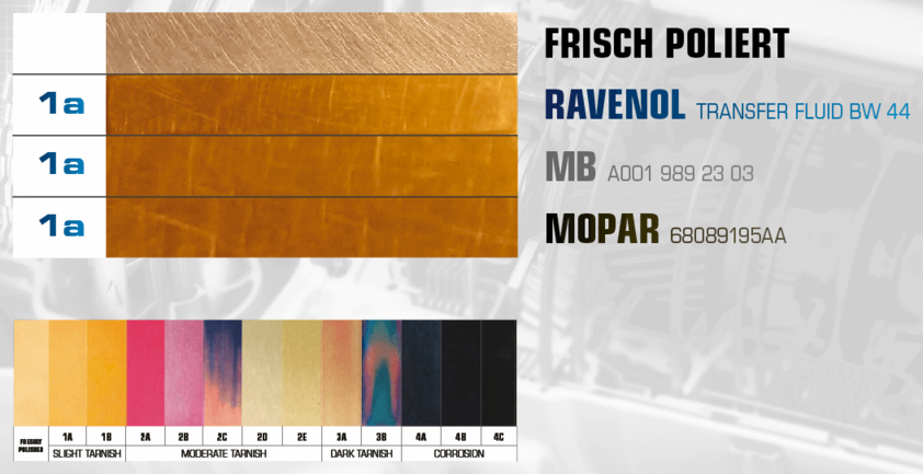 Das Verfahren bestimmt die korrosiven Wirkungen von Schmierölen und -fetten auf Kupfer. Die Korrosion von Metall basiert auf Faktoren, einschließlich, aber nicht beschränkt auf aktive Schwefelverbindungen im Öl. Der Korrosionsgrad am Ende des Versuchs wird durch Vergleich des Kupferstreifens mit einer Farbskala ermittelt. Das Ergebnis wird in eine von vier Hauptkategorien (1-4) und innerhalb dieser zwei bis fünf Unterkategorien (a-e) eingeteilt.