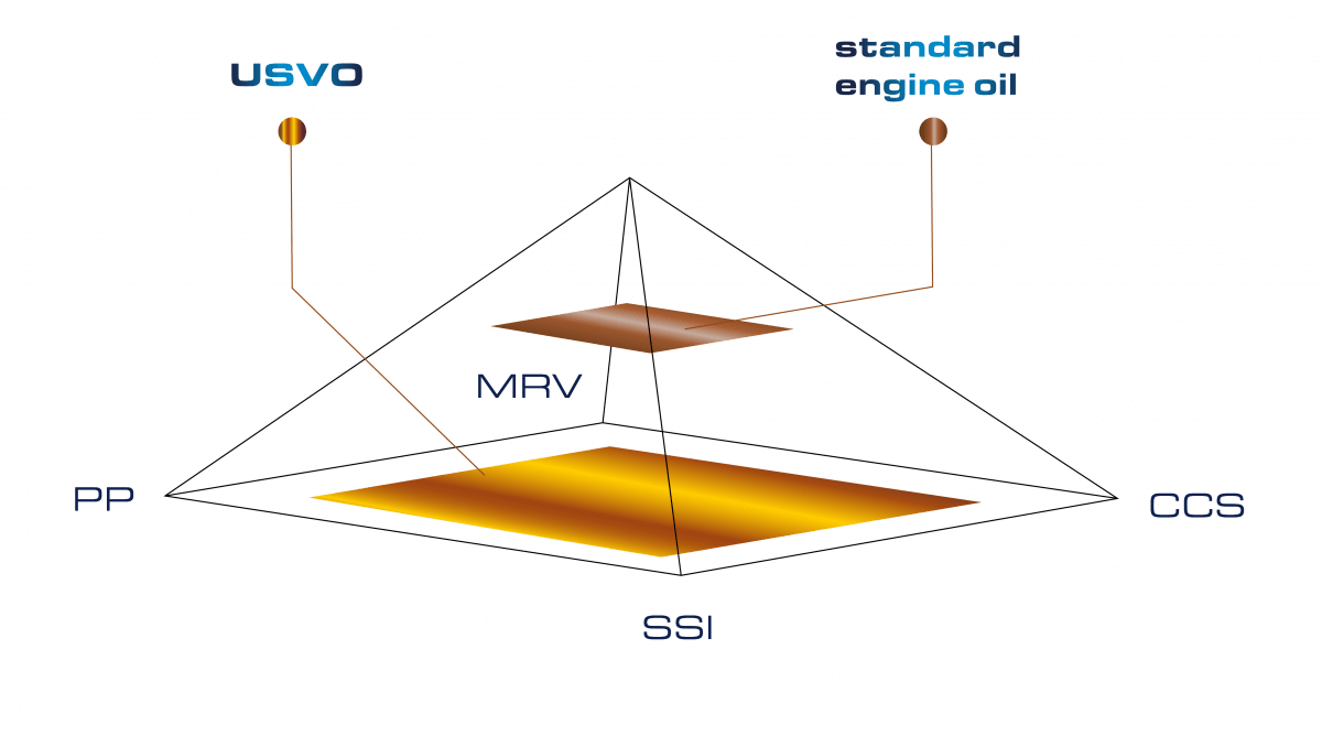 Lubricant requirements for modern vehicles are growing continuously. Unwanted changes in viscosity may quickly cause serious problems. For this case, we have developed the USVO® lubricant technology with which we set a very high viscosity stability at high and low temperatures. Therefore only high-quality fully synthetic base oils and additives are used. USVO® stands for Ultra Strong Viscosity Oil.
